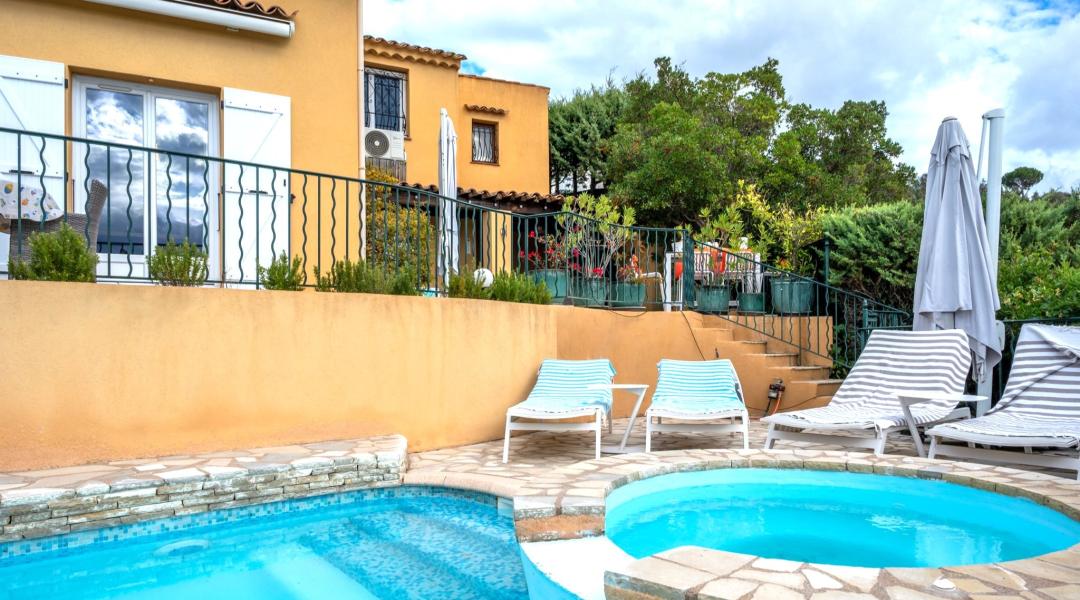 Comfortabele Provençaalse villa met airco voor 8 personen met prachtig uitzicht over de Golf van Saint-Tropez. De villa is onlangs volledig gerenoveerd en heeft een fijn verwarmbaar zwembad. Strand en haven op 3 km 😎😎