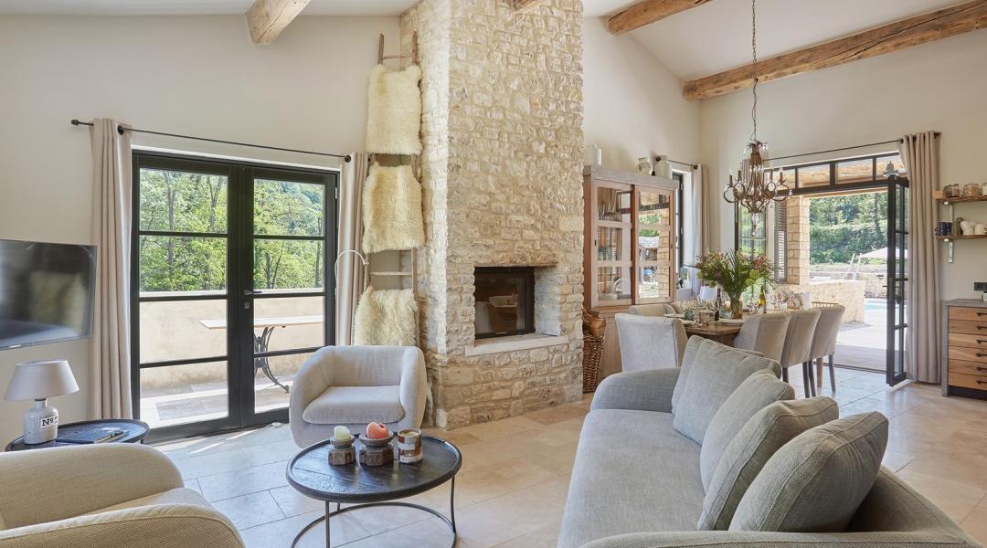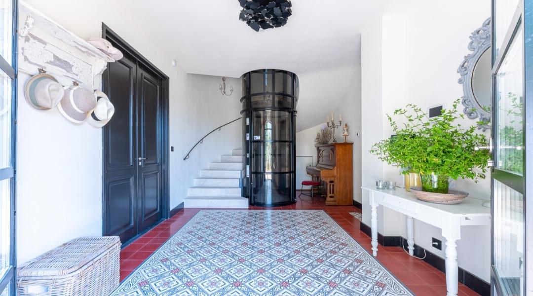 Het huis heeft een woonoppervlakte van ongeveer 400 m2. Een moderne installatie zorgt in het hele huis voor gekoelde of verwarmde vloeren zodat je hier altijd de perfecte temperatuur hebt. Verder zijn nog twee kamers met airco. Je vindt in dit huis alles wat je nodig hebt om heerlijke maaltijden te bereiden. Op de eerste verdieping is de open eetkamer met een professionele keuken en wijnkelder. Op de tweede verdieping is er een volledig uitgeruste keuken, die in verbinding staat met de tuin en de ruime woonkamer met hoge plafonds en een grote open haard. Heel bijzonder aan dit huis is de glazen lift. Hierdoor zijn alle verdiepingen van het huis gemakkelijk en comfortabel toegankelijk voor iedereen.