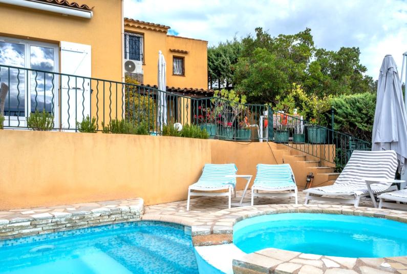 Rustig gelegen villa voor 8 personen met mooi uitzicht o.a. op een wijnveld op een terrein van ca 3000 m2. Er is een mooi terras bij het huis met loungeset en eettafel. Bij het mooie bijzondere zwembad van maar liefst 14 meter lang is ook een mooi houten terras met 8 ligbedden.