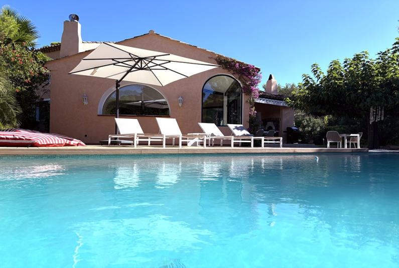Mooie villa met groot houten vlonder bij het zwembad. Op de veranda naast de keuken komt een mooie eettafel voor 8 personen. Er is een heerlijke loungebank aanwezig. Het prachtige zwembad is 14x4 meter en er staan 8 ligbedden. BBQ, plancha aanwezig (gas)