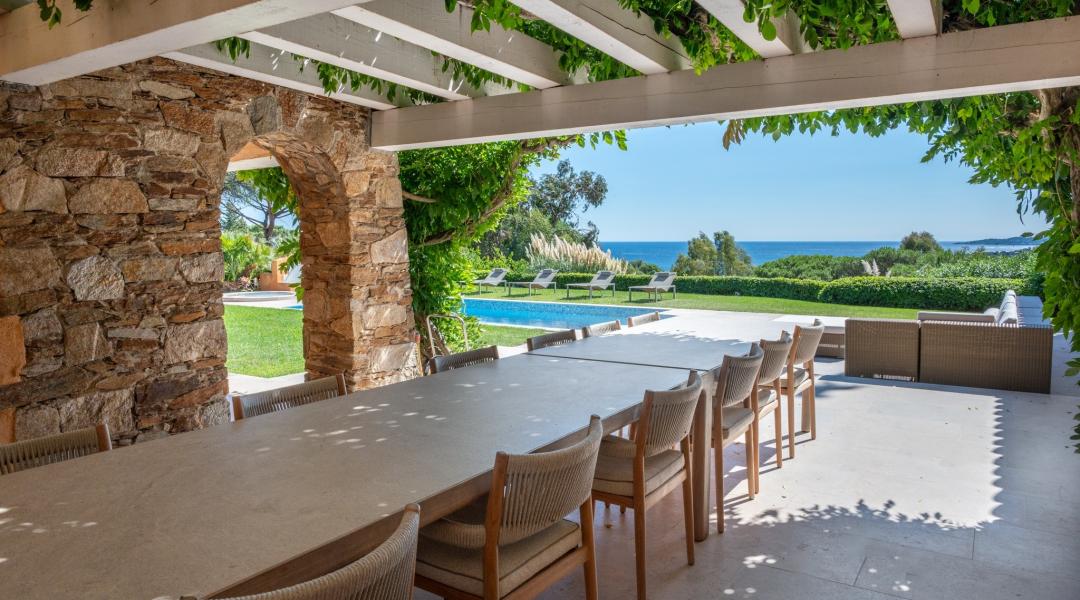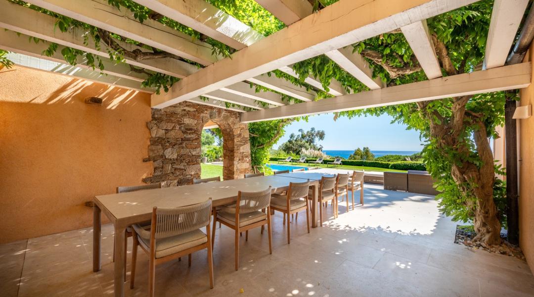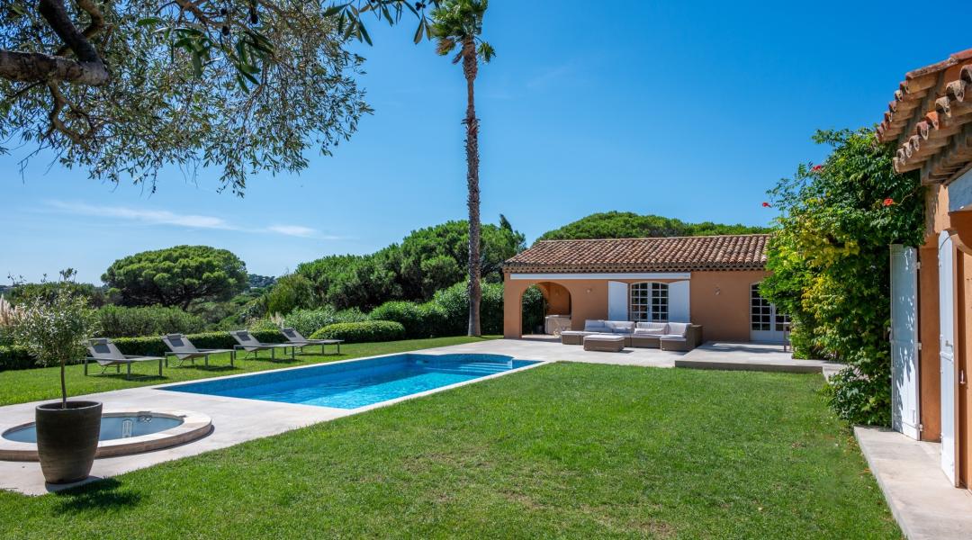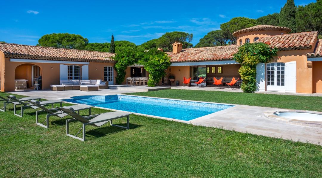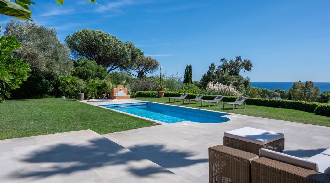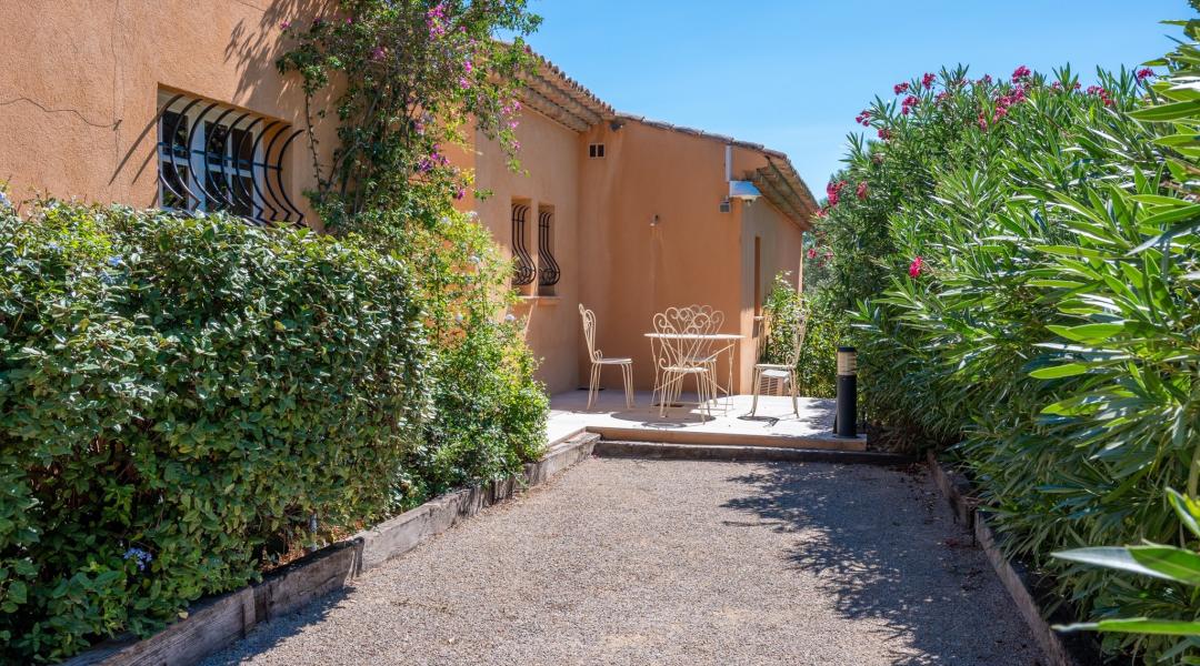 De villa is gelegen in het rustige Domaine de la Nartelle in Sainte-Maxime, met een prachtig uitzicht op de zee, die op slechts 600 meter luchtlijn ligt. De villa bevindt zich op een ruim terrein van ongeveer 2.500 m² en biedt een ideale combinatie van privacy en toegankelijkheid. Naar strand is het een kwartiertje lopen en met de auto bent snel in Ste Maxime, Saint-Tropez en Les Issambres.