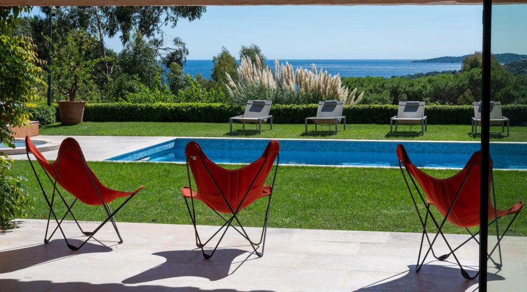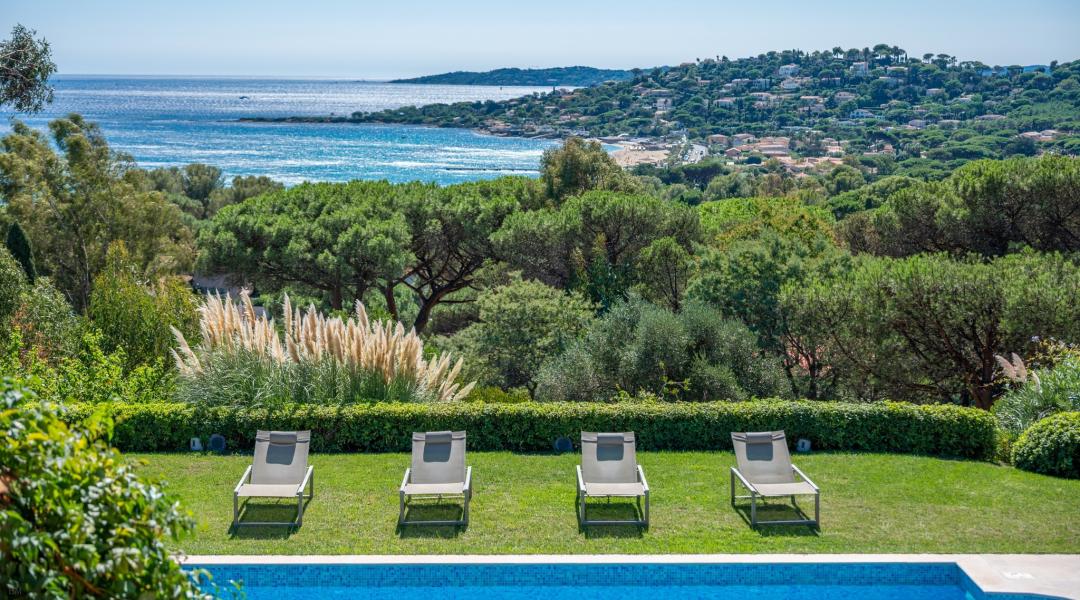 Moderne villa in in Sainte-Maxime met airco, zeezicht en verwarmde privézwembad op loopafstand van het strand. Ruimte voor 8 volwassenen en 2 kinderen. De foto's zijn ons ter beschikking gesteld door de eigenaar.